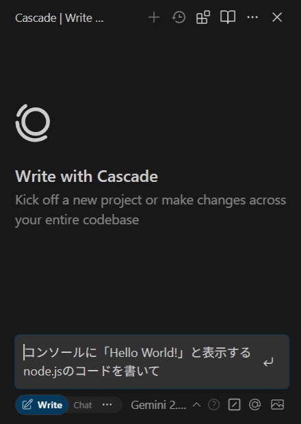 Cascadeに頼めばコーディング支援もしてくれるとても便利なものになっています。