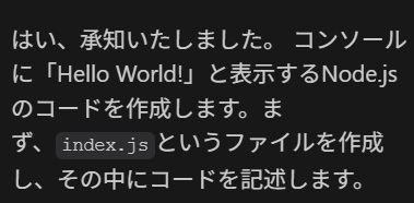 今回はシンプルなコードですが、結構長文も書いてくれます。うまく動かないこと多いんですけどね笑